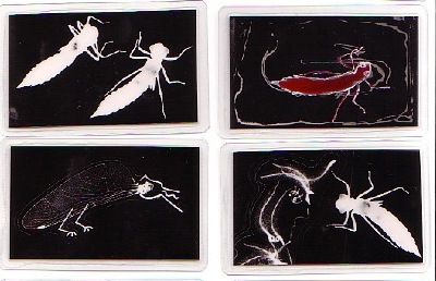 Chimigrammes Karten mit verschiedenen Fotochemikalien gemalt, eine kleine Hommage an Pierre Cordier